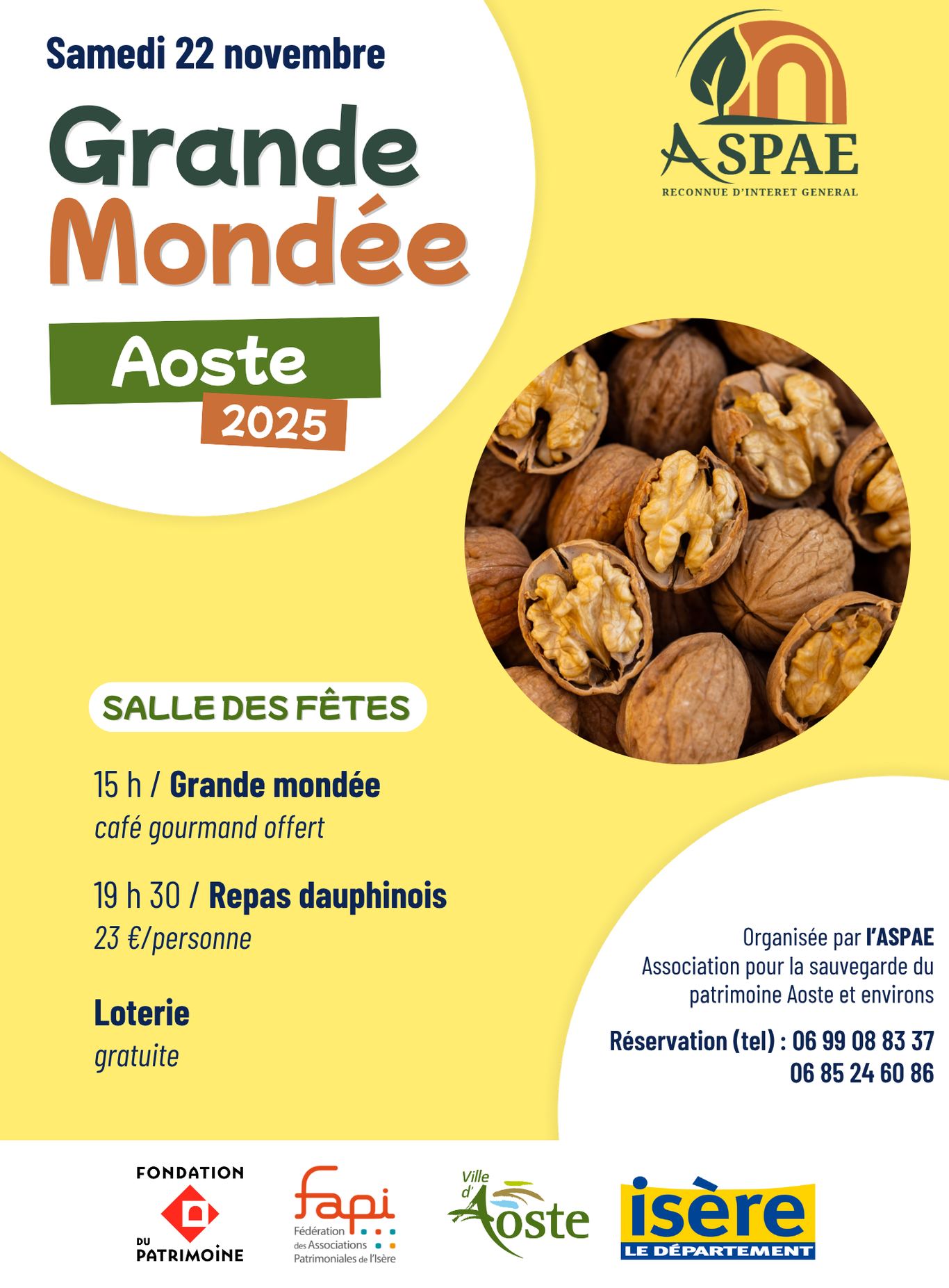 L'ASPAE a eu le plaisir de participer au marché dominical d'Aoste, où ses bénévoles ont proposé aux visiteurs un stand aux saveurs d’antan : vin de noix , huile de noix et délicieux gâteaux préparés par notre présidente Marie-Claude. Cette belle matinée , placée sous le signe du partage et de la convivialité, a permis de faire découvrir les traditions locales tout en soutenant les actions de sauvegarde du patrimoine.