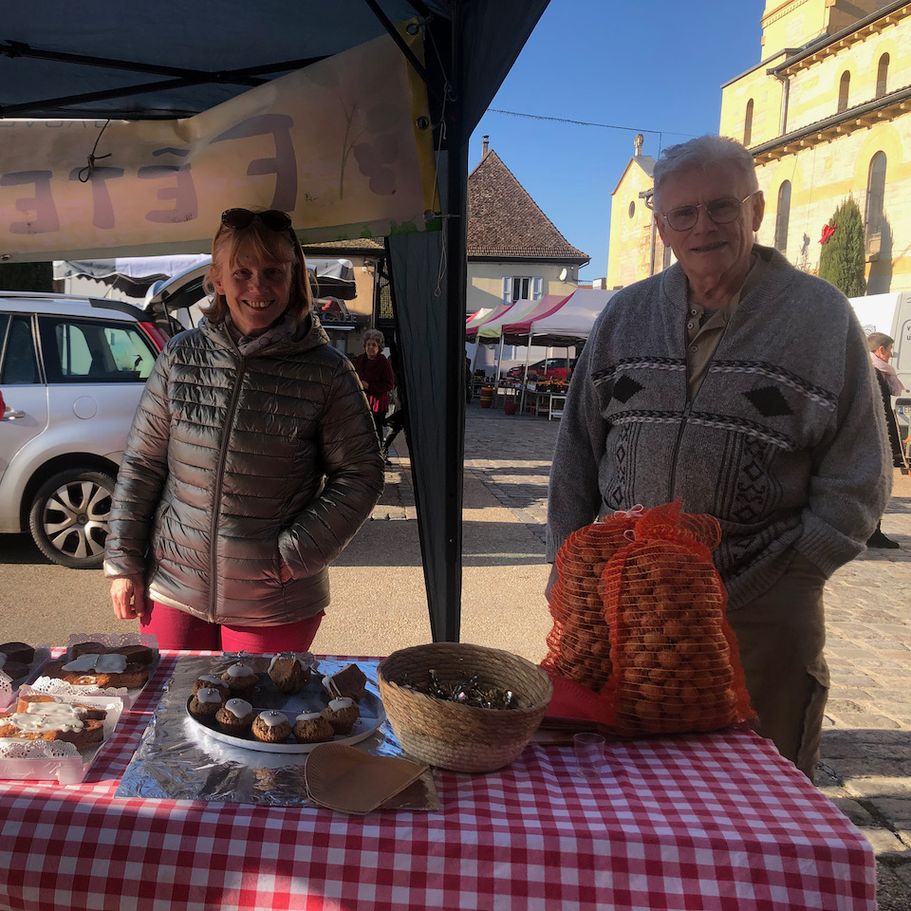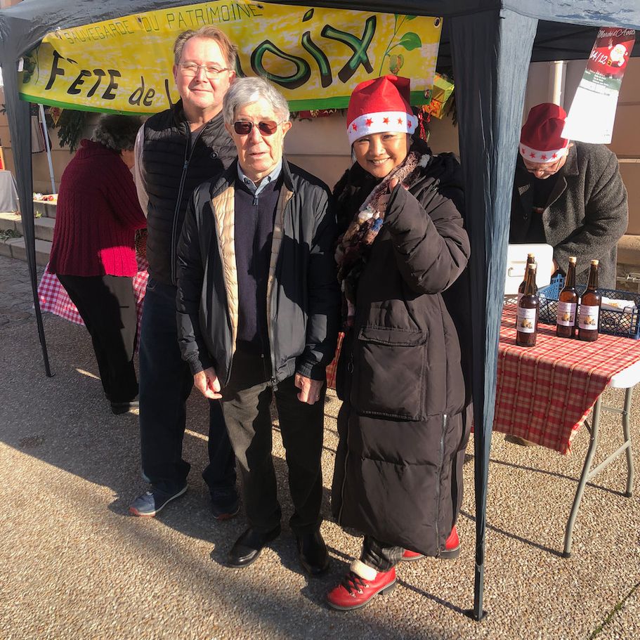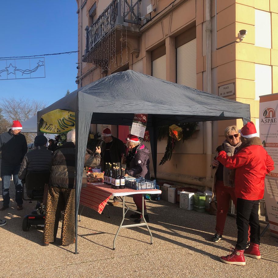 Dans l’esprit chaleureux des fêtes, l’ASPAE a eu la joie de participer au marché dominical de Ville d'Aoste - Isère. Sur notre stand aux parfums d’antan, les visiteurs ont pu s'offrir du vin de noix , de l’huile de noix et de délicieux gâteaux aux noix préparés avec soin par notre présidente, Marie-Claude Mauchamp.